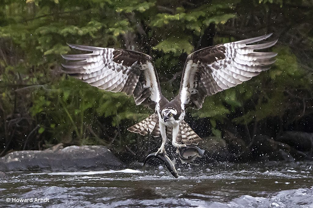The annual springtime spectacle of alewife spawning in Maine is an excellent opportunity to photograph ospreys in flight.