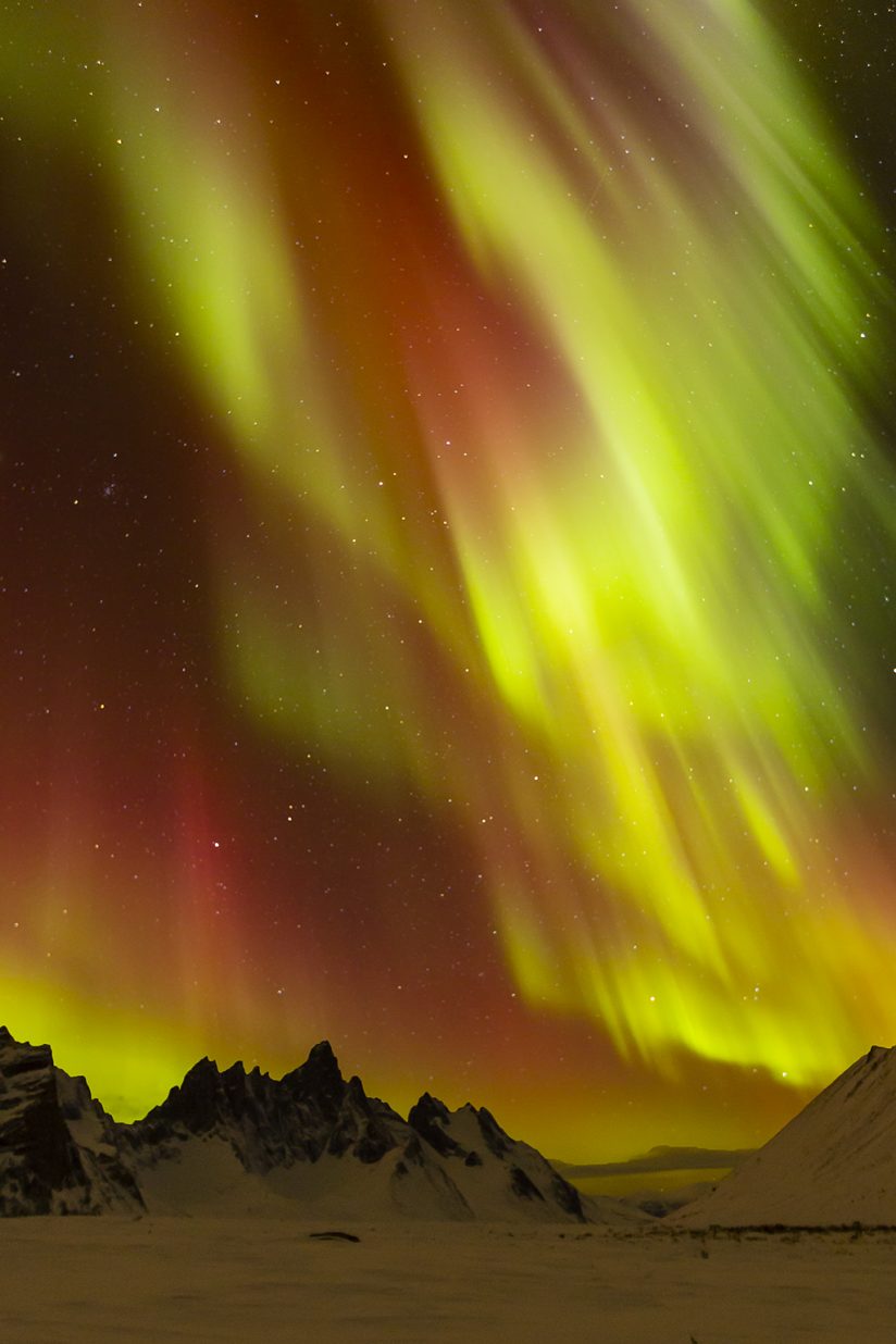 Aurora over Tombstone Mountain, Tombstone Territorial Park, Yukon Territory, Canada. A basic starting point for aurora photos is a 10-second exposure, but the right exposure time can vary significantly, so trial and error is required.