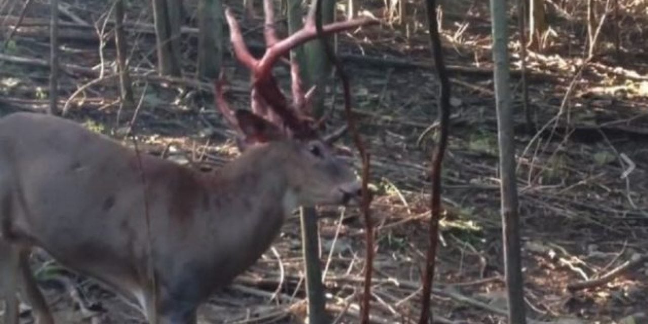 Watch this stud buck wage bloody battle with a pair of saplings.